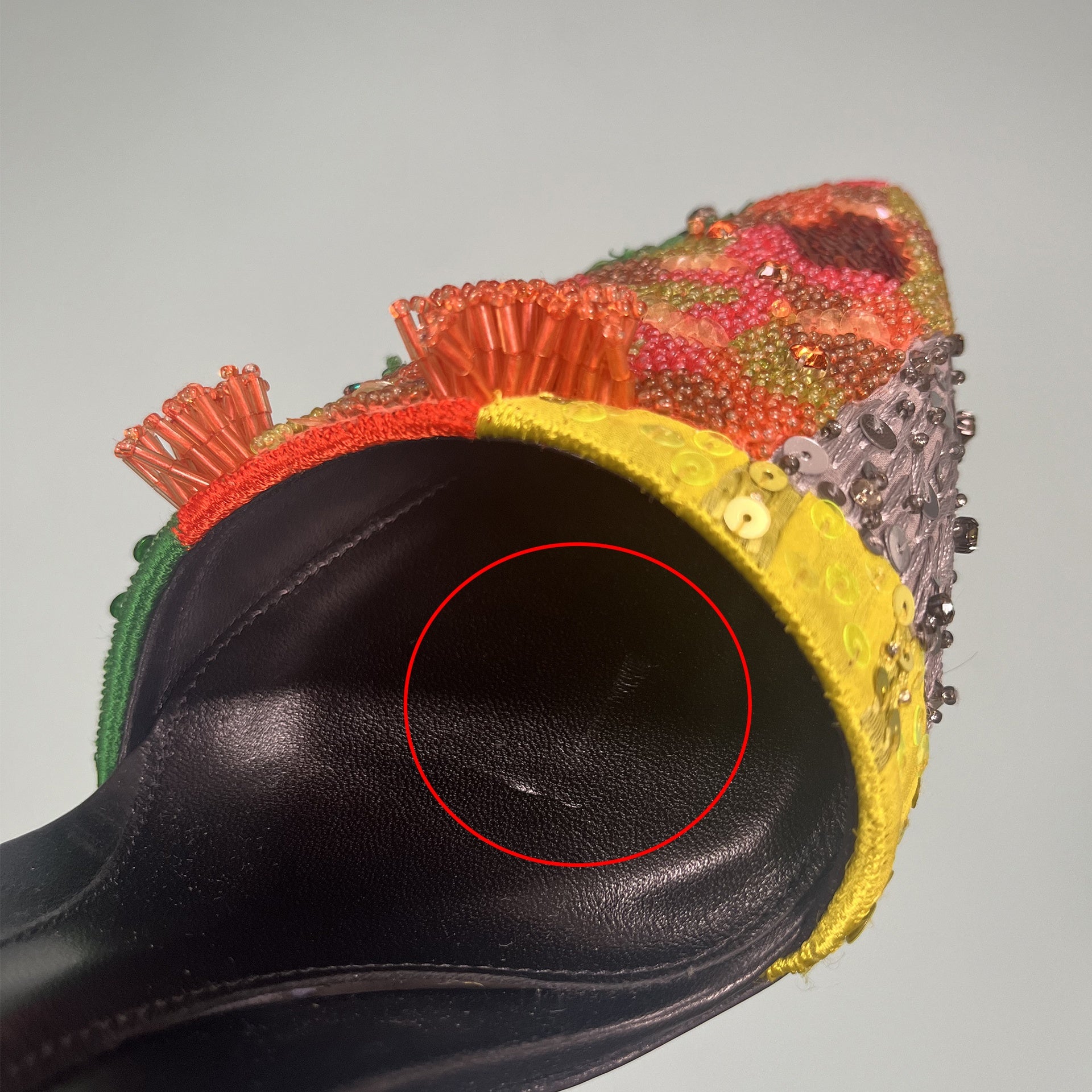 - Imperfection: scratches insole and missing metal parts on the side